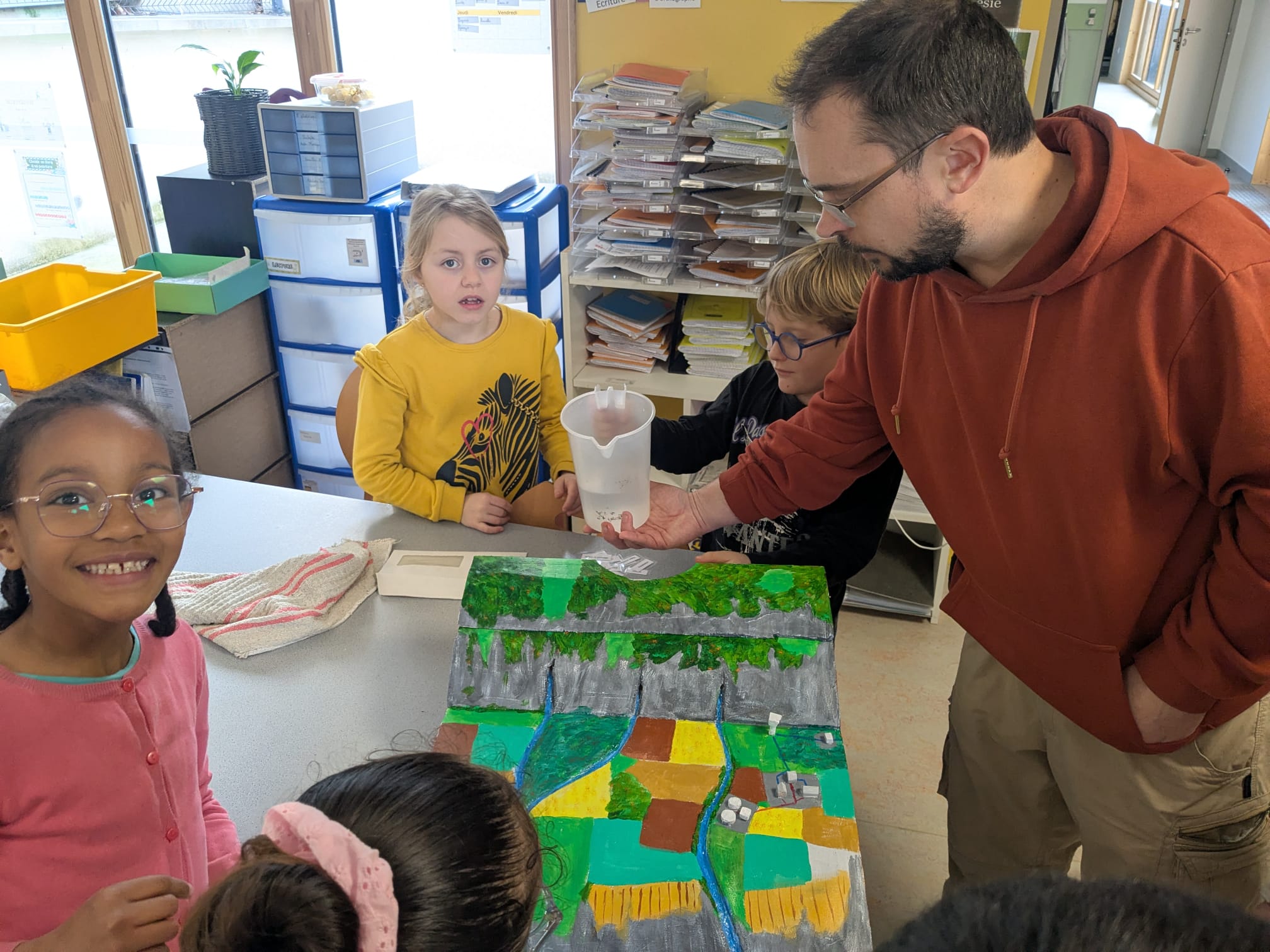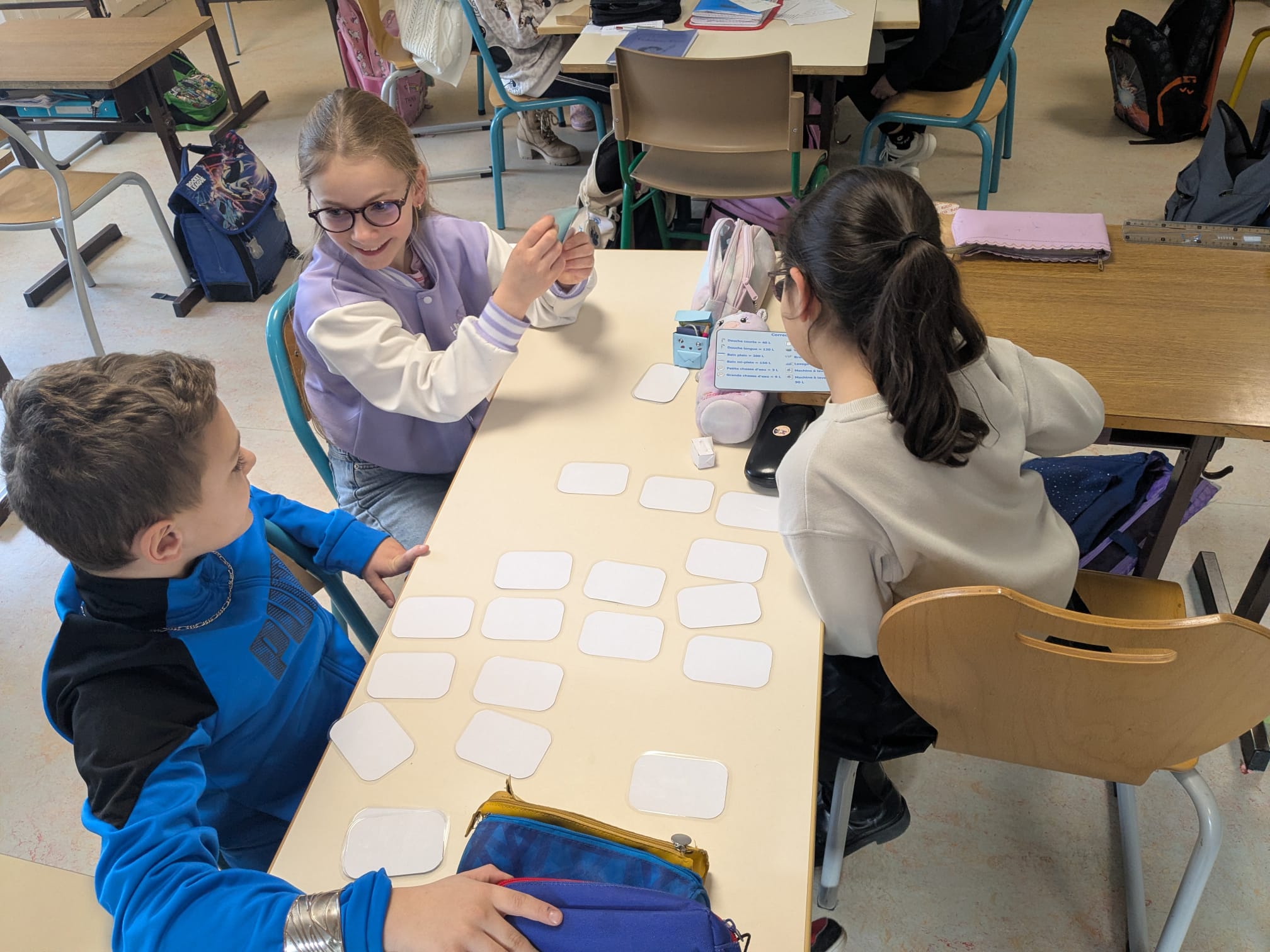 Ils ont commencé par des ateliers tournants : maquette du cycle de l'eau, expérience autour de l'eau et un jeu de memory sur les consommations.