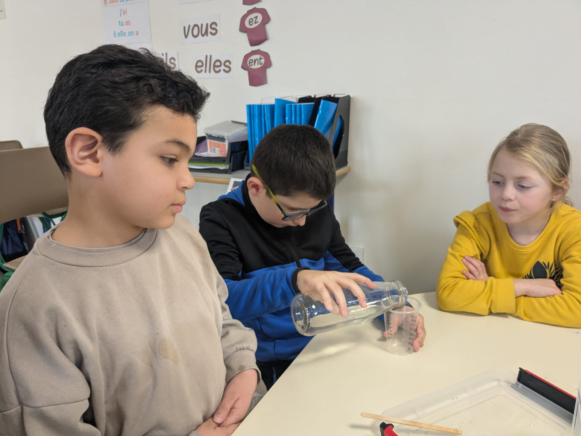 A la suite de ces ateliers, les élèves ont réalisé une expérience dans laquelle ils devaient tenter de nettoyer de l'eau polluée.
