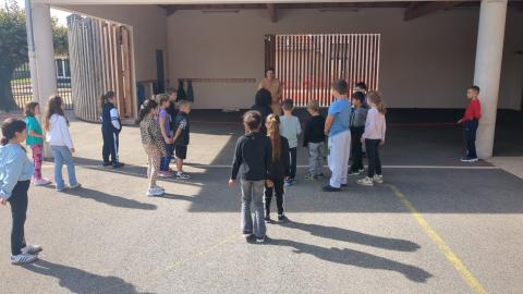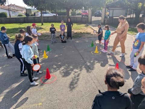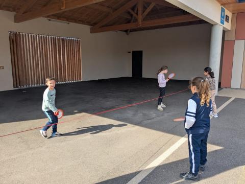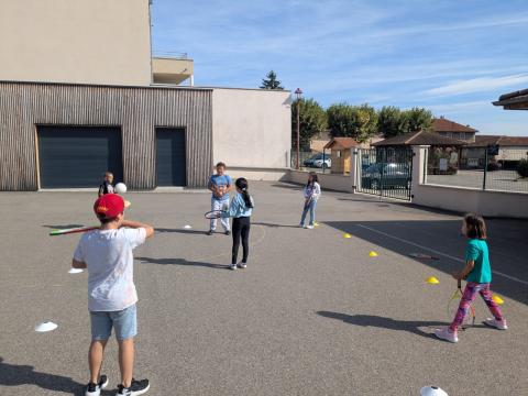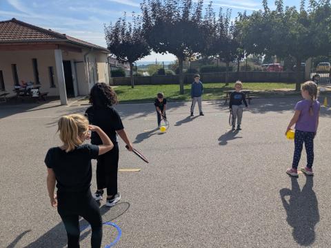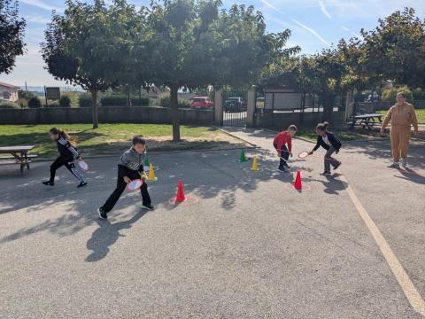 Tous les mardis, la classe des CE1-CE2 retrouve avec impatience Lucie, pour les séances de mini-tennis. C'est une initiation à ce sport, très apprécié des élèves. Merci à Lucie pour son professionnalisme.