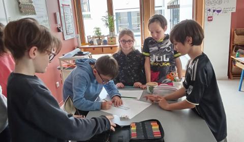 Après avoir travaillé sur le continent de plastique et sur l'eau en tant que ressource à protéger, les élèves de CE2 CM1 CM2 participe au défi de la Fondation Maud Fontenoy.