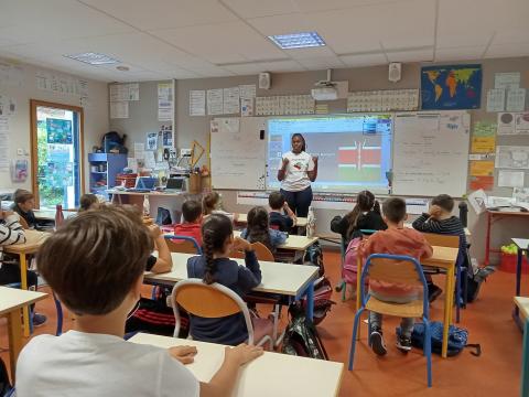 Elle va intervenir dans toutes les classes (2 heures par classe par semaine) de la PS au CM, en petits groupes ou en plus grands selon l'âge des élèves.