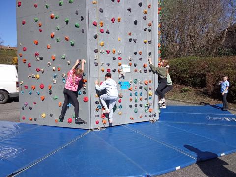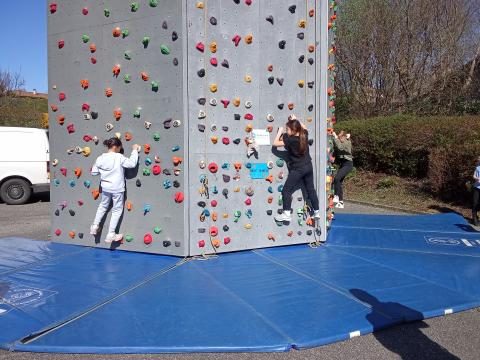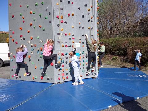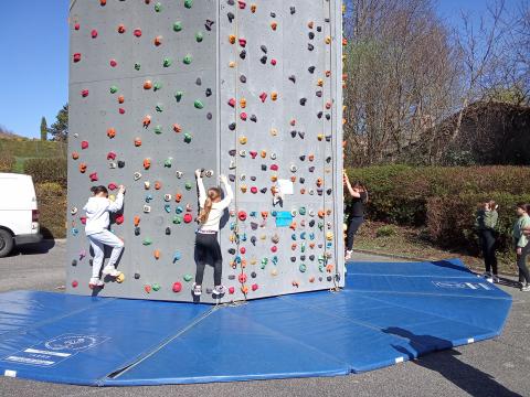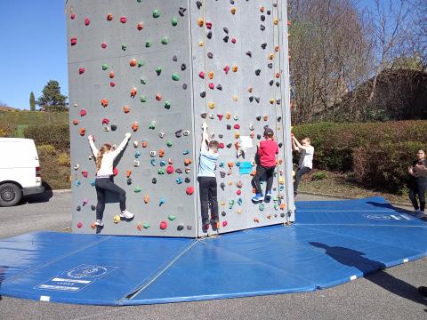 Nous avons eu la chance de découvrir un mur mobile et Franck le moniteur dans la cour du côté de la cantine.