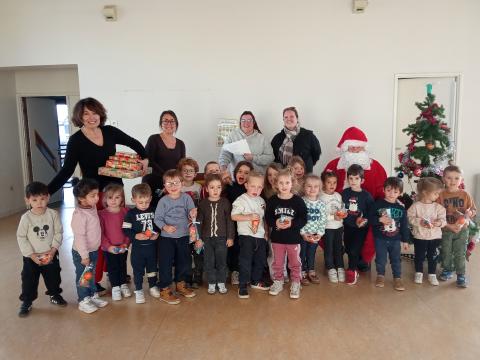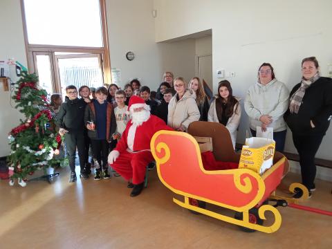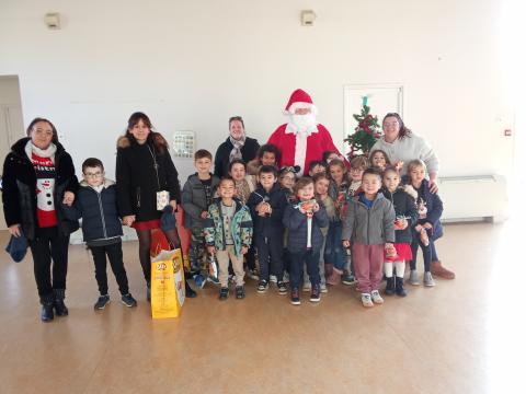 Il a distribué des sachets de gourmandises et des cadeaux pour chaque classe.