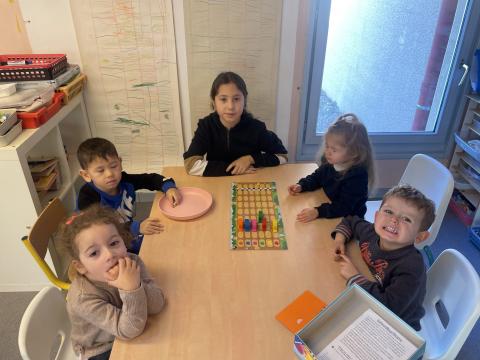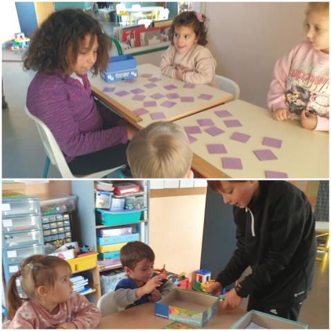 Depuis l’année passée, nous allons aider les enfants de la maternelle pendant leur travail en ateliers.