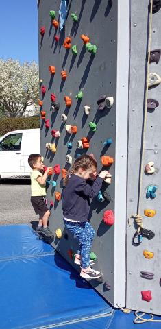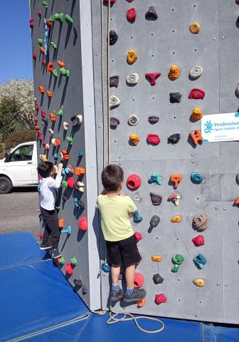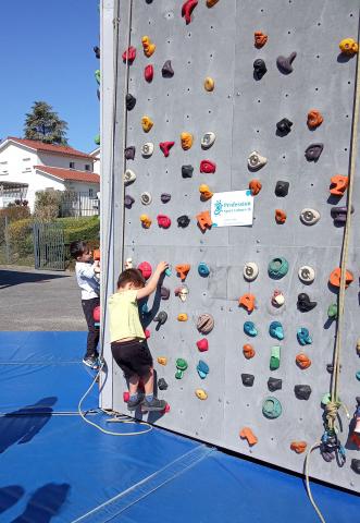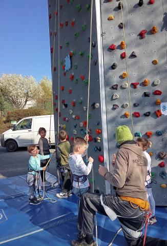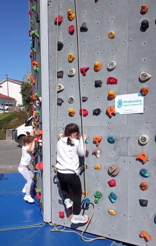 Tout au long de la séance, Franck BE escalade de Profession Sport 38 a proposé aux élèves des jeux à réaliser pour s'initier aux joies de la grimpe : grimpe horizontale puis verticale.