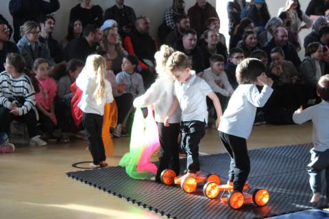 Le cycle cirque des maternelles (10 séances) s'est clôturé par un magnifique spectacle lundi 16 mars après l'école.